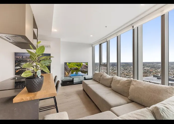 멜번 Gorgeous High-Rise Unit With Sky Bar Pool And Gym 아파트는 플레밍턴 경마장에서 2.2km 떨어져 있습니다. 이 아파트는 1개의 침실, 1개의 욕실과 부엌을 갖추고 있습니다.